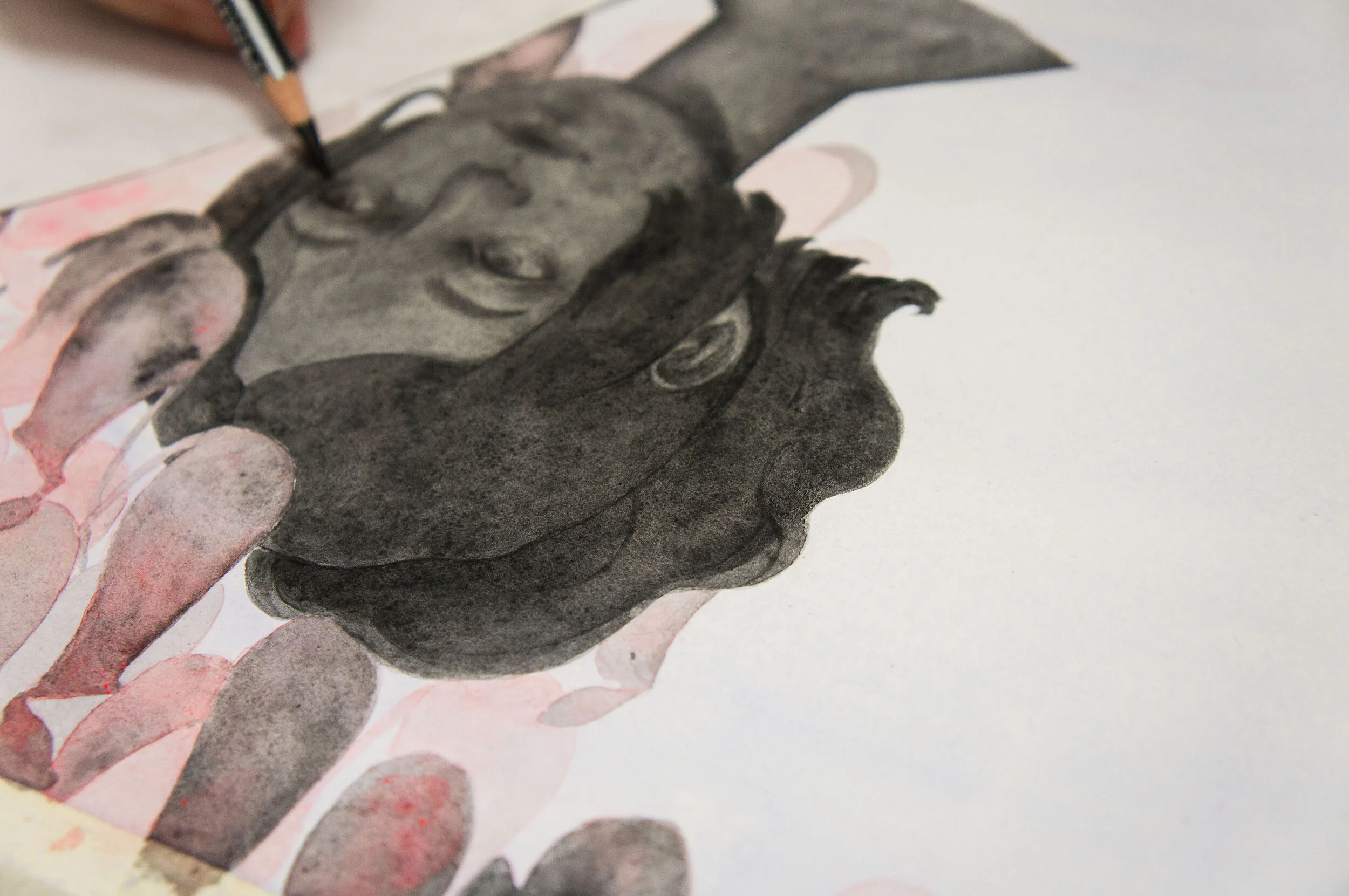 Acrylic paint, colored pencil